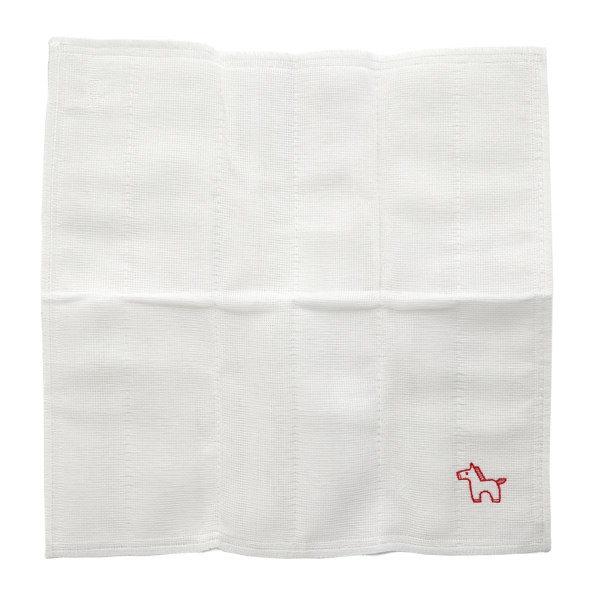 吸水性に優れたかや生地ふきんに、十二支のうち【午】を刺繍したおめでたい一品です。